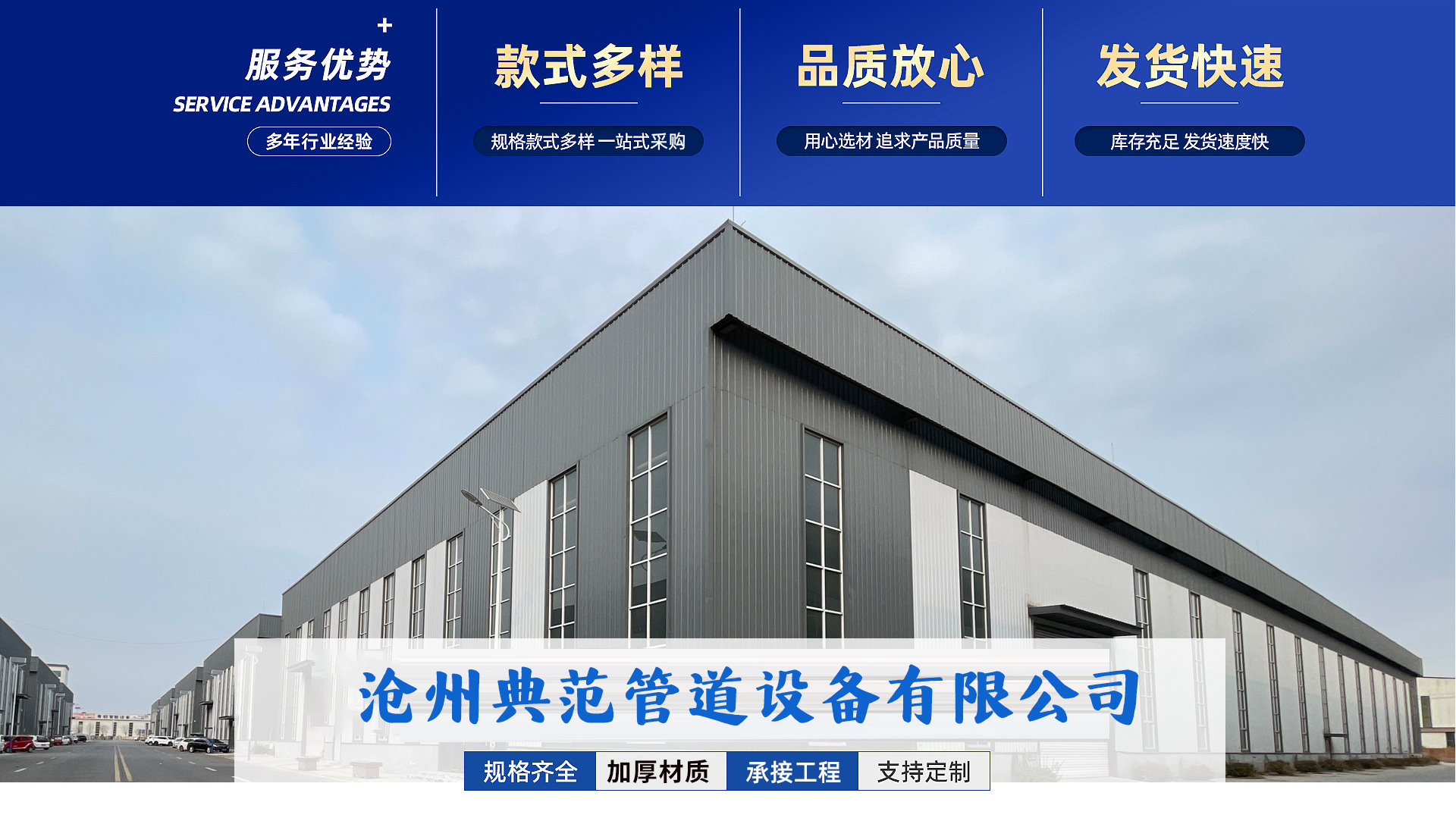 滄州典范管道設(shè)備有限公司 自公司成立以來,本著“質(zhì)量為先,服務(wù)為本”的經(jīng)營理念,服務(wù)于新老客戶,獲得新老客戶的好評,現(xiàn)已完整的線上線下銷售渠道,有著良好的質(zhì)量管理體系,所生產(chǎn)的產(chǎn)品銷往各地。企業(yè)堅(jiān)持“誠信、品質(zhì)、服務(wù)、速度”經(jīng)營方針,對待客戶、合作伙伴堅(jiān)持誠信為先,我們要為客戶不斷提供高質(zhì)量的產(chǎn)品和及時(shí)周到的服務(wù),并不斷提升我們的服務(wù)能力,在此基礎(chǔ)上不斷地改善我們的組織結(jié)構(gòu)和工作流程,使我們的企業(yè)健康成長經(jīng)營。歡迎各界朋友蒞臨參觀、指導(dǎo)和業(yè)務(wù)洽談。